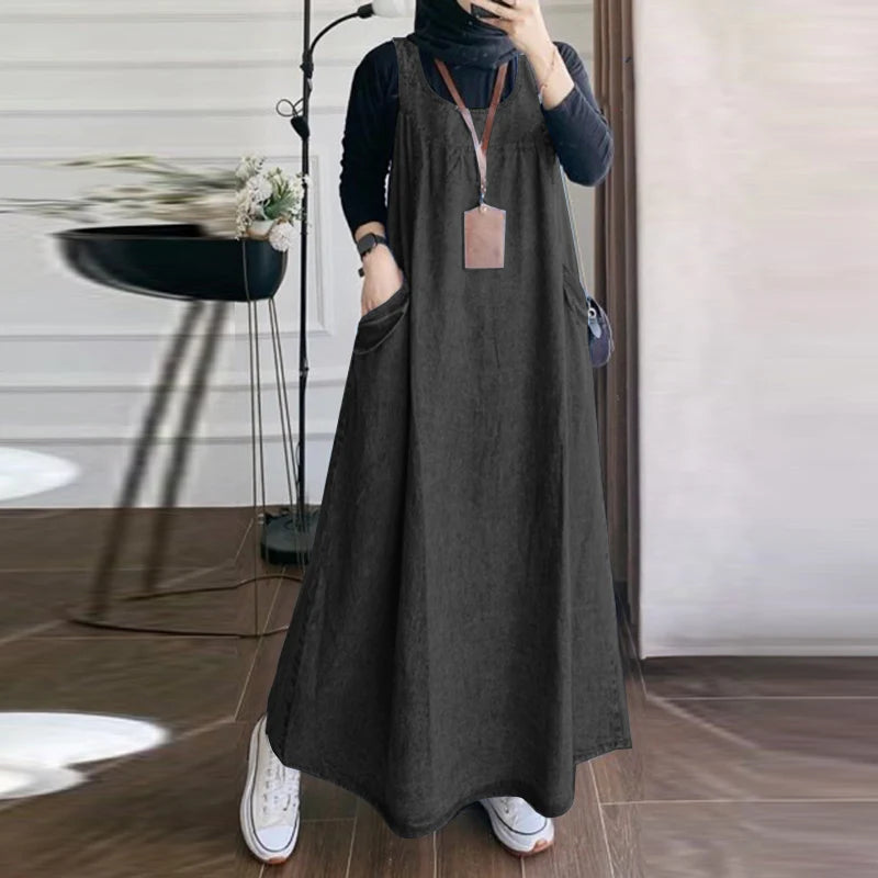 This fashionable sundress combines the casual appeal of denim with modest coverage, making it perfect for Muslim women who want comfortable, stylish everyday wear. The loose fit ensures comfort while the classic denim fabric adds a touch of casual sophistication to your wardrobe.