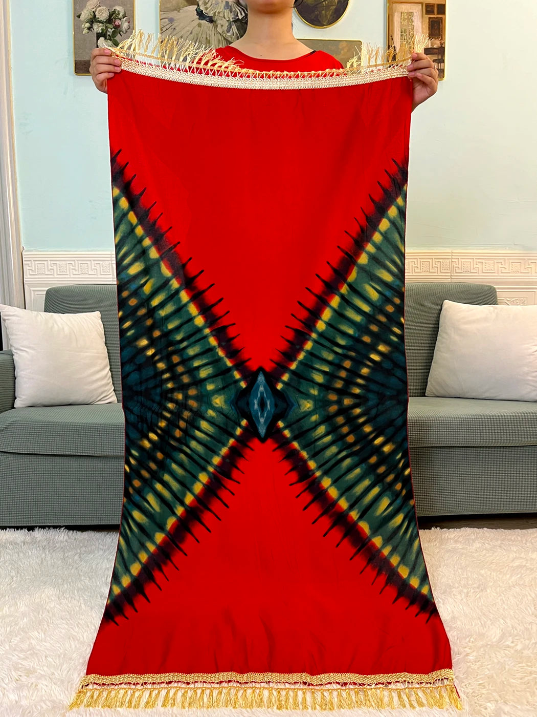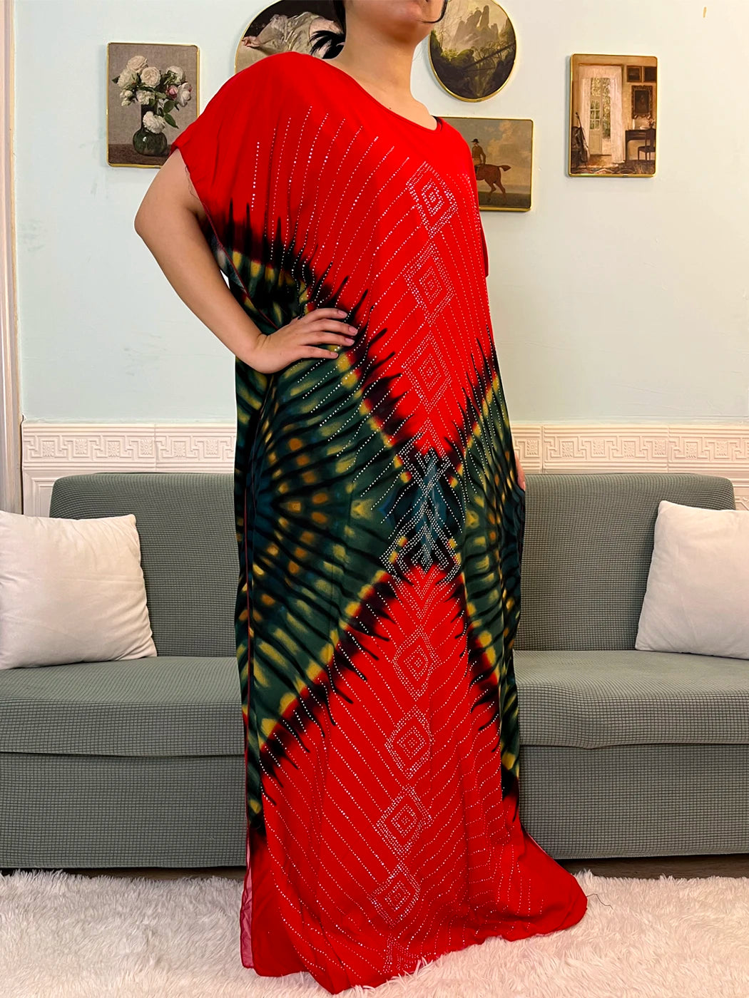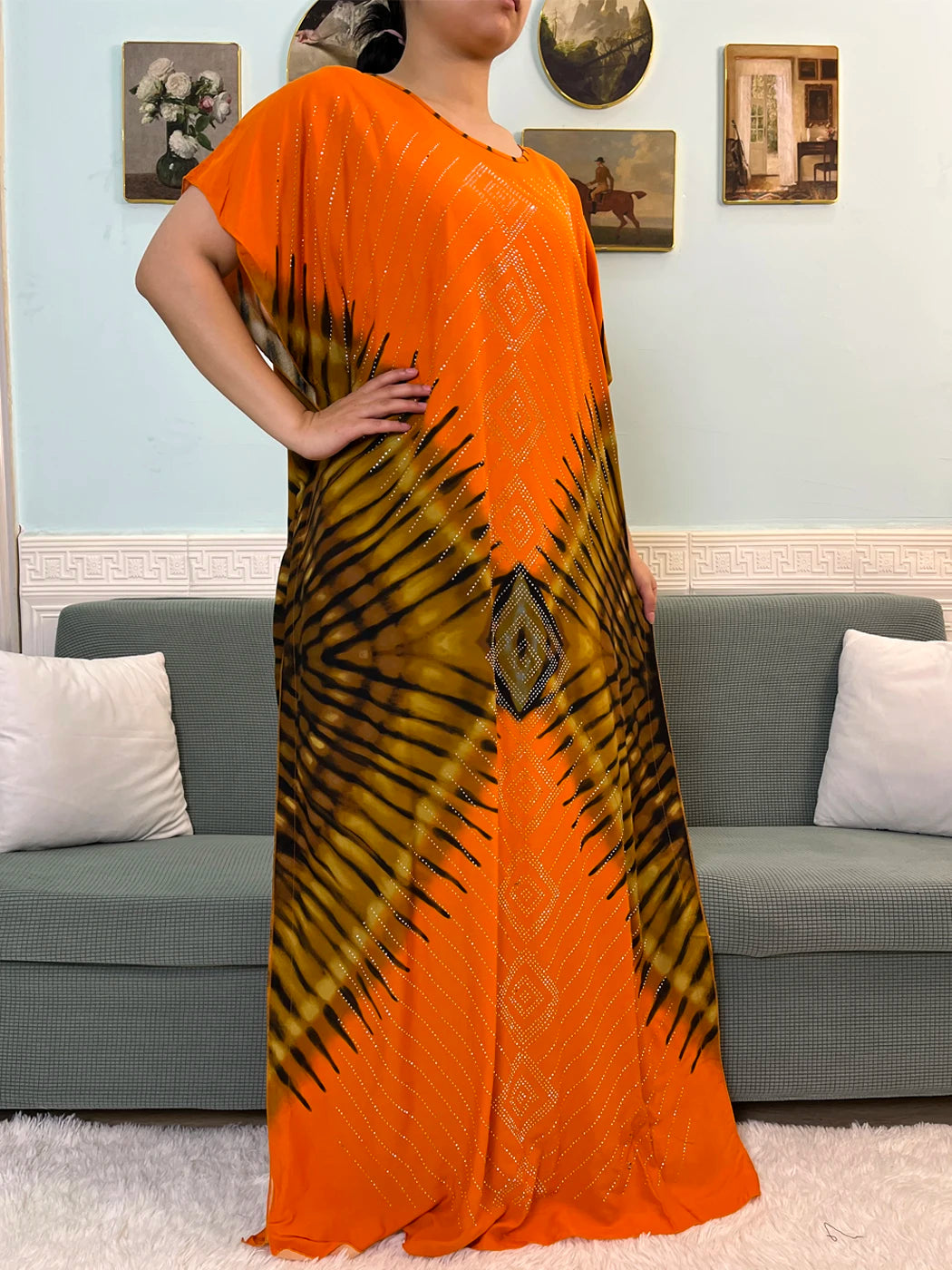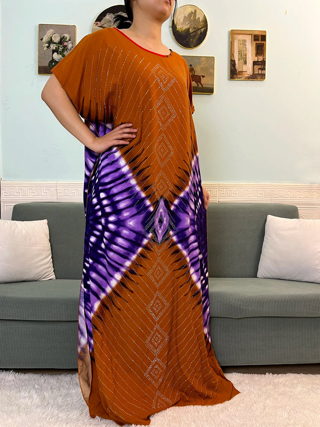 - Loose, comfortable caftan-style fit