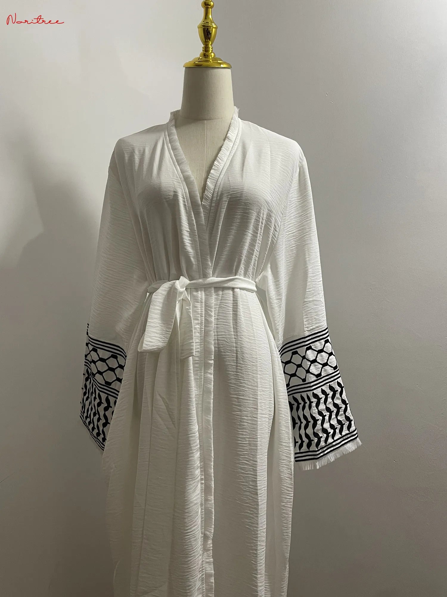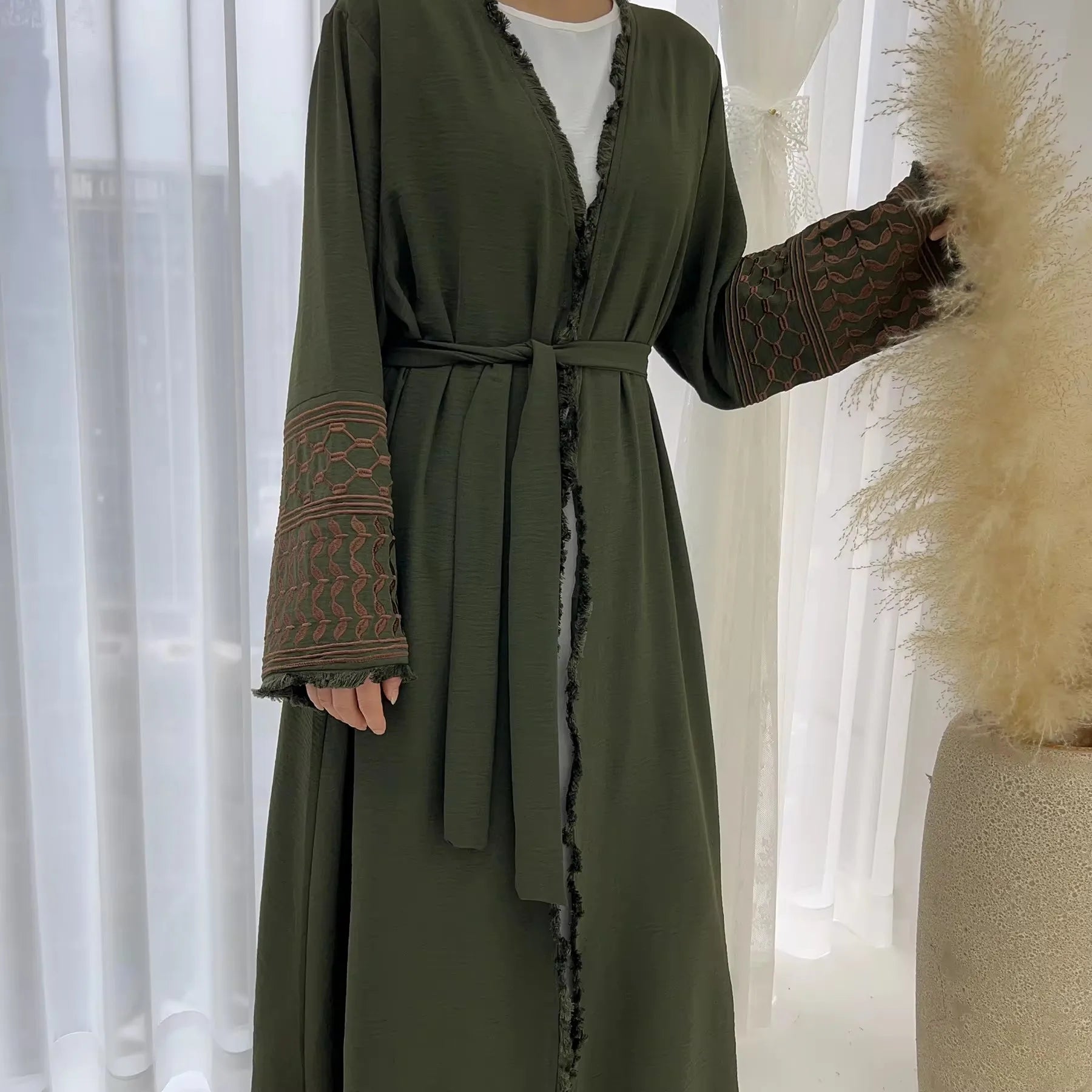 Make a statement with our Embroidery Kimono Abaya. This oversized fashion robe features beautiful embroidery details and elegant tassel accents for a truly special look.