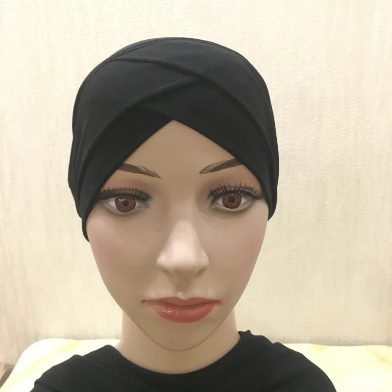 This isn't your ordinary inner cap. The distinctive criss cross forehead detail adds an elegant touch that elevates your look, whether you're wearing it as an underscarf or as a standalone turban. The stretchy fabric ensures comfort, while the unique design ensures you'll always look put-together. Unique design - only 5 left!