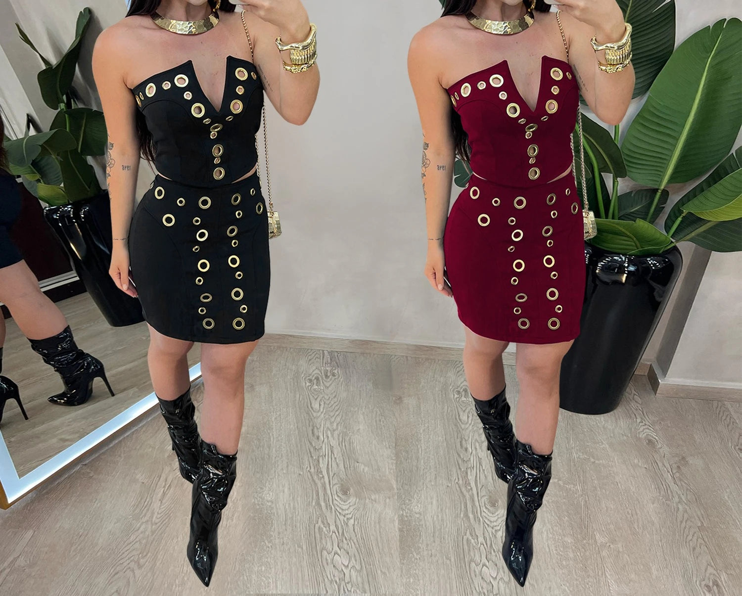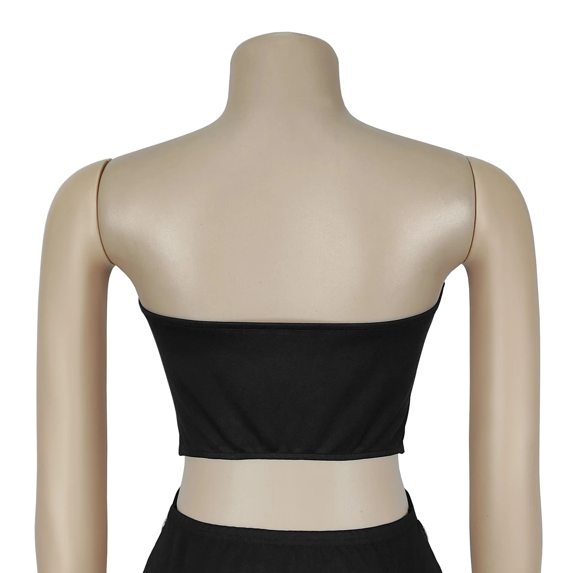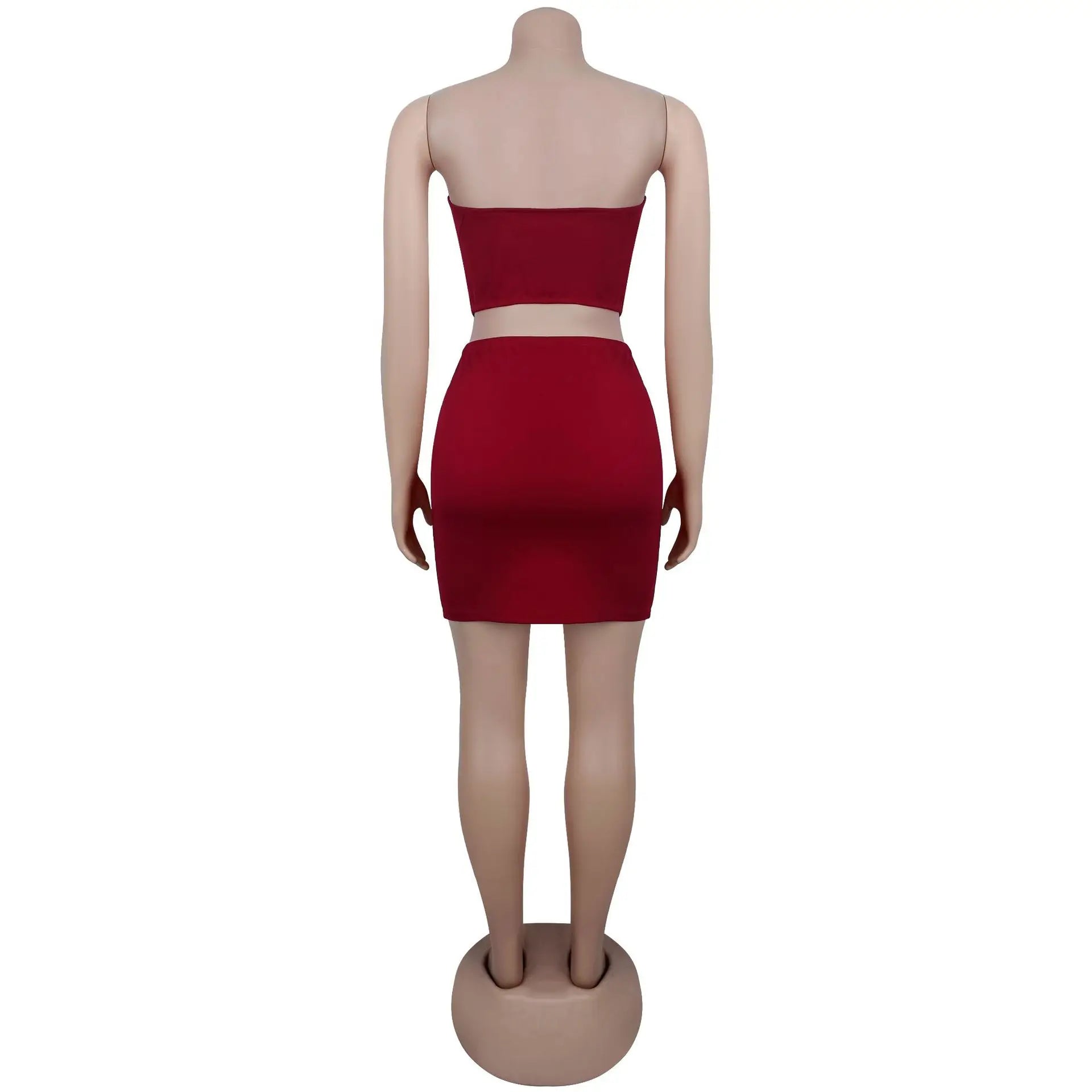 This trendy 2-piece dress set features a sexy strapless top and short skirt, perfect for parties and evening events.
