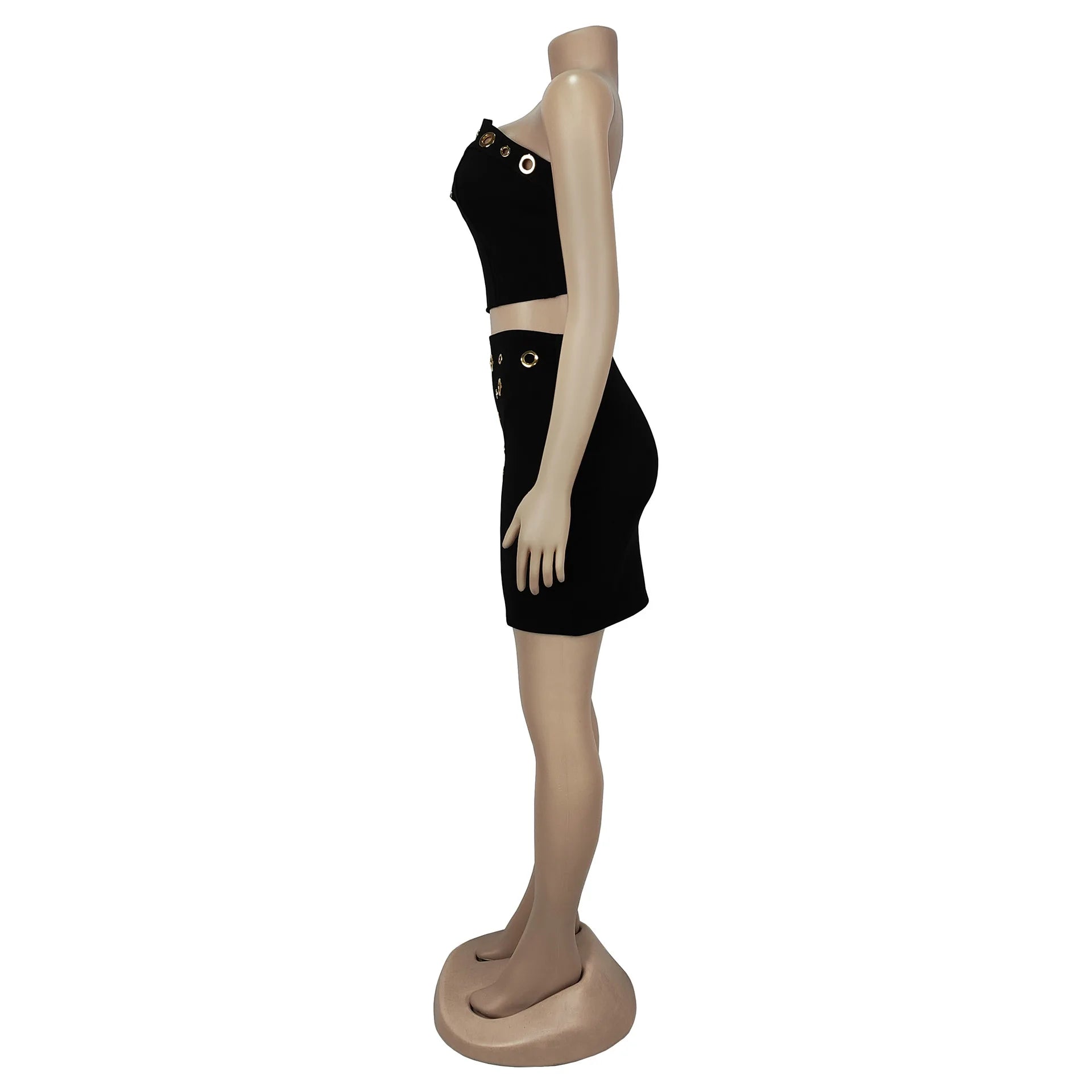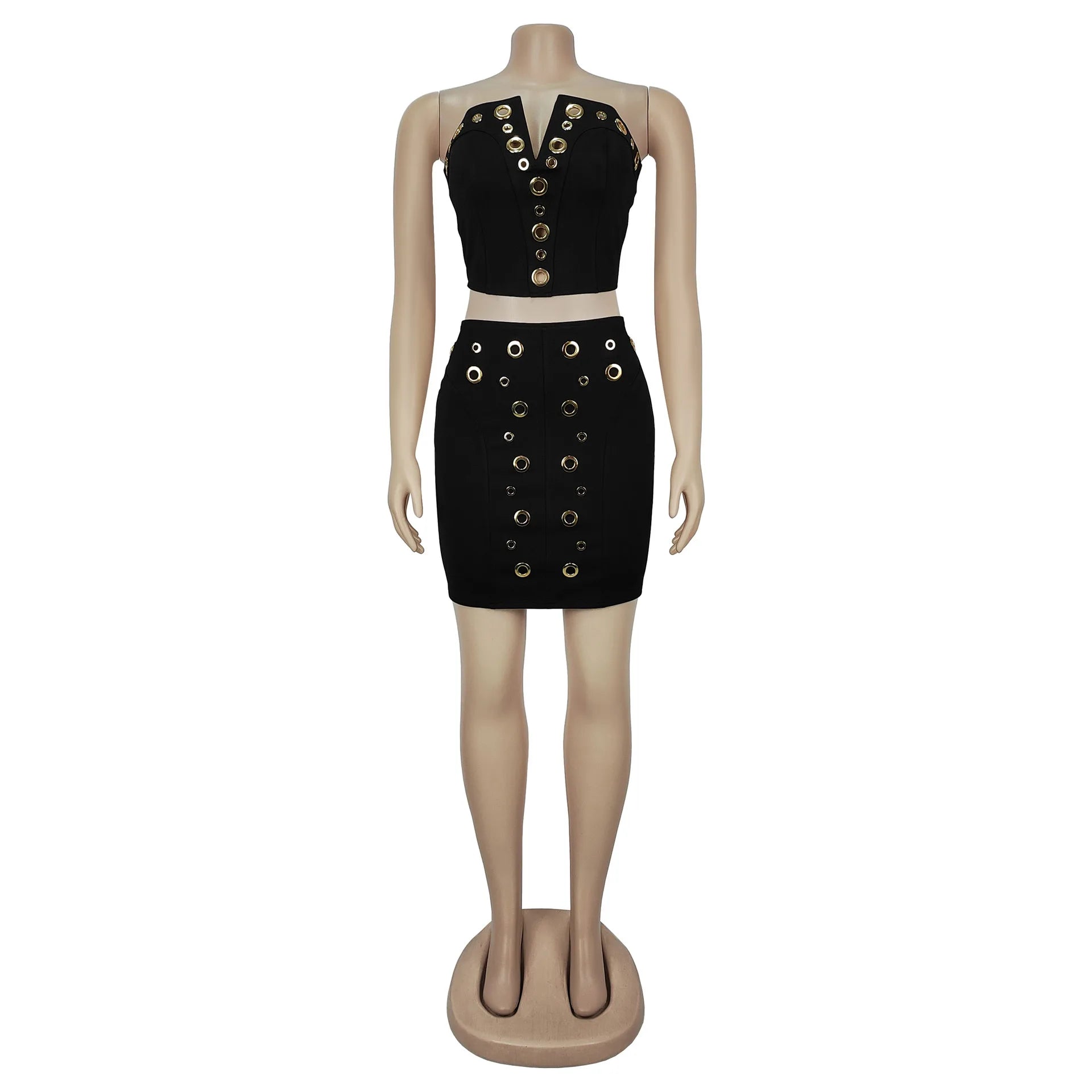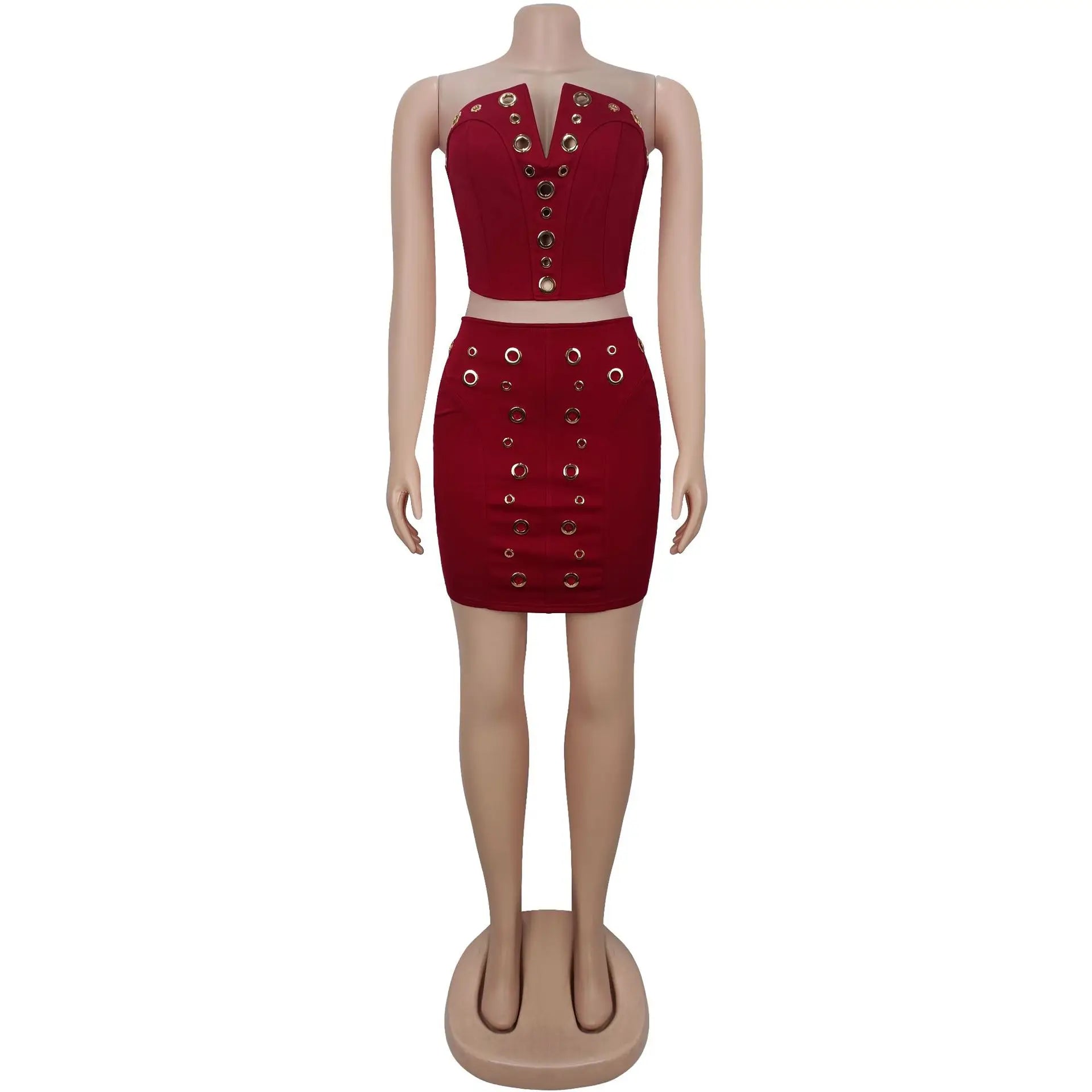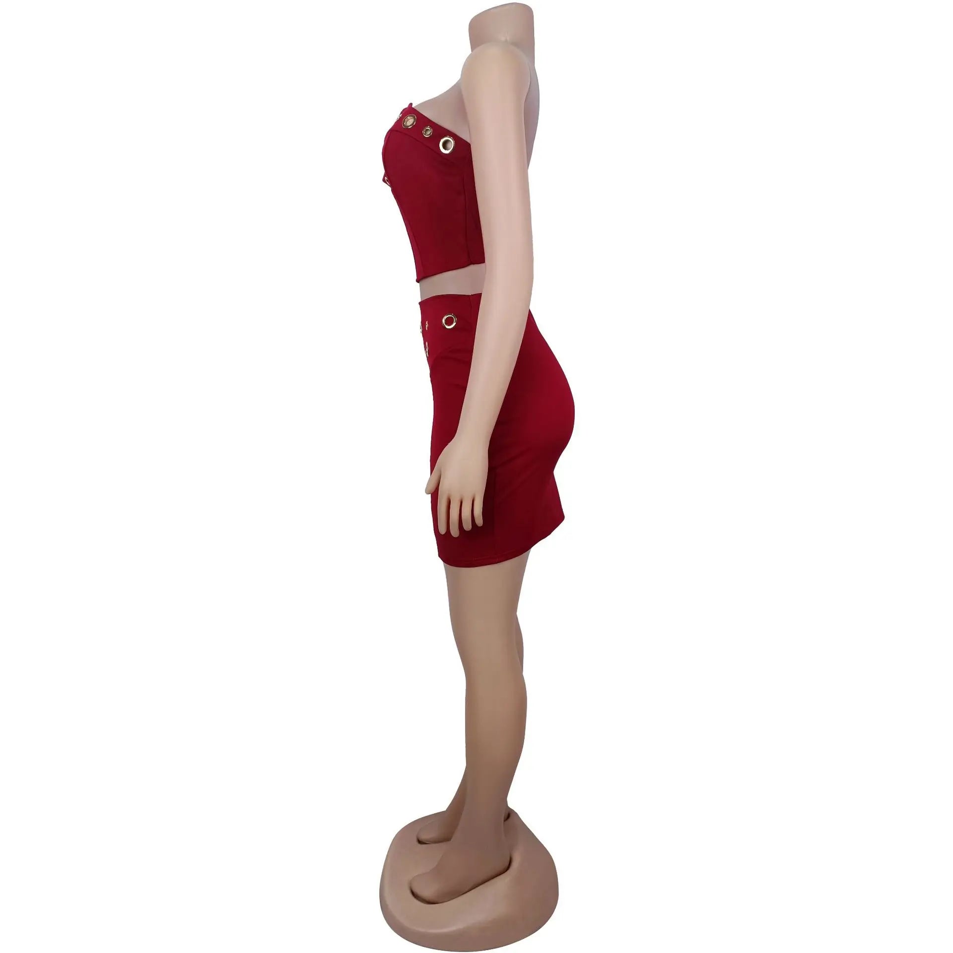 This trendy 2-piece dress set features a sexy strapless top and short skirt, perfect for parties and evening events.
