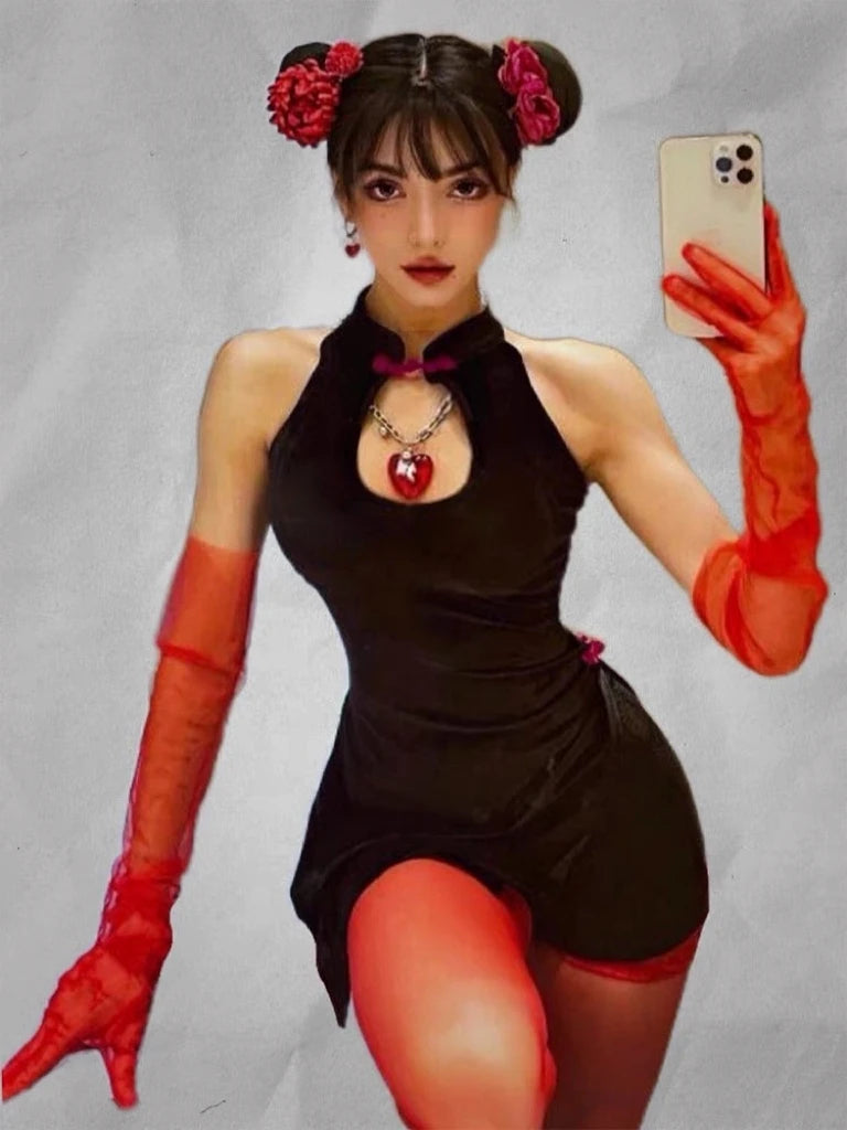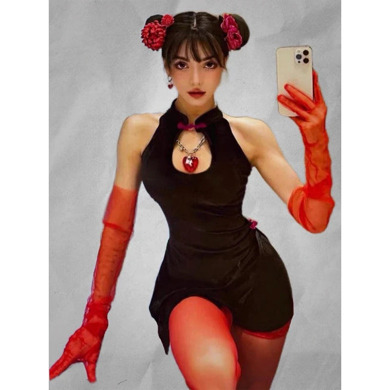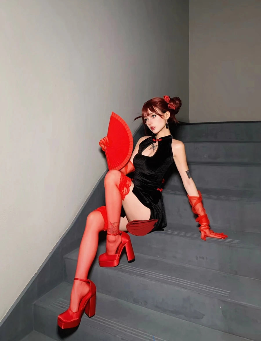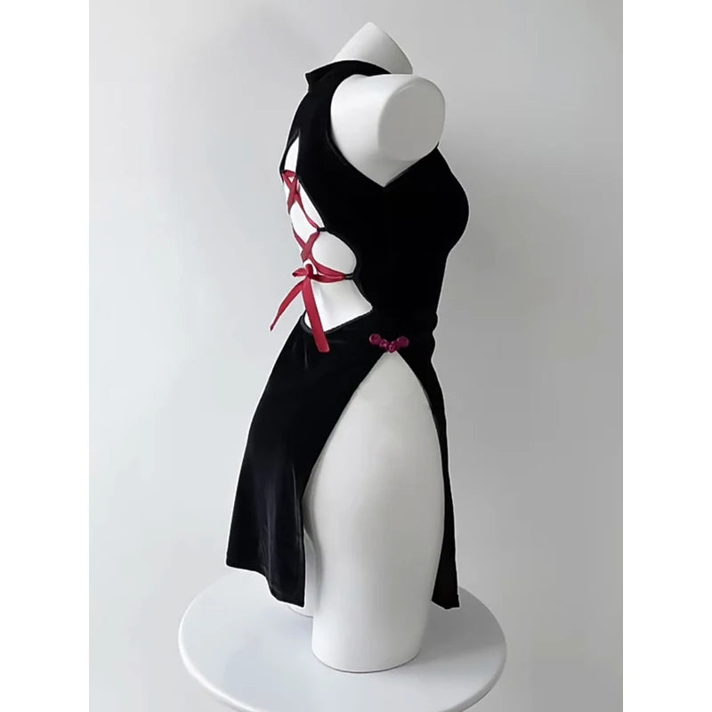 Make a bold statement this New Year's Eve! This sexy performance costume features a vintage-inspired design with red and black split details, perfect for parties, bars, and special performances.