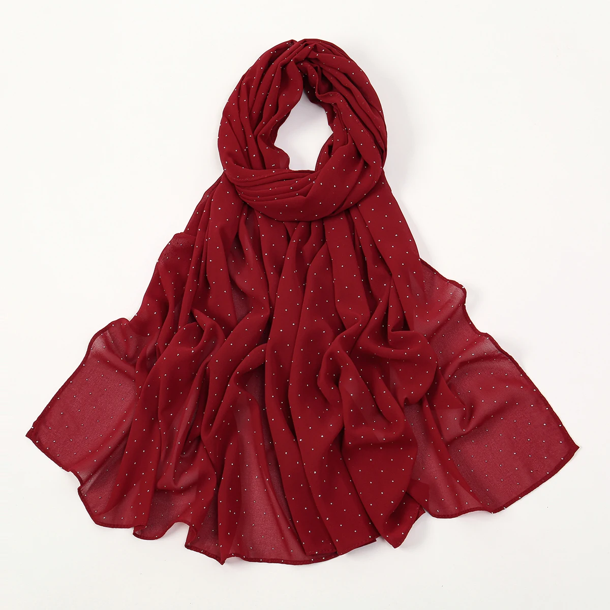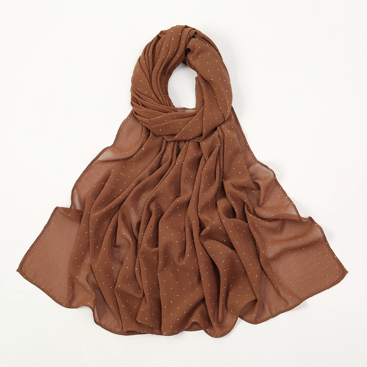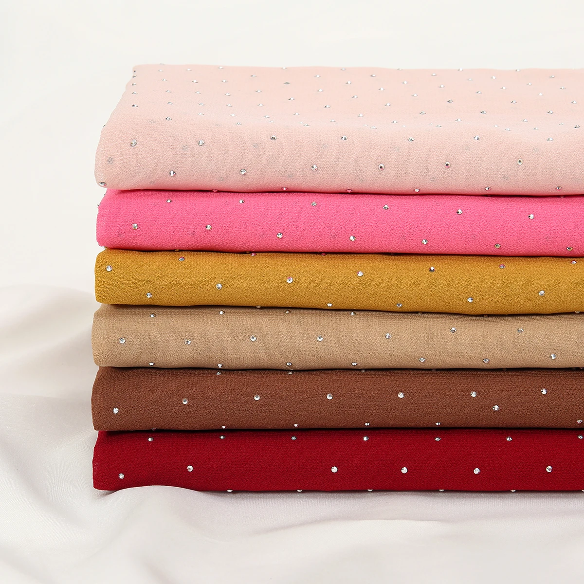 Rhinestone Bubble Chiffon Muslim Hijab Scarf Women Muslim Hijab Soft Shawls Hijabs Islamic Turban Premium Scarfs 180*70cm