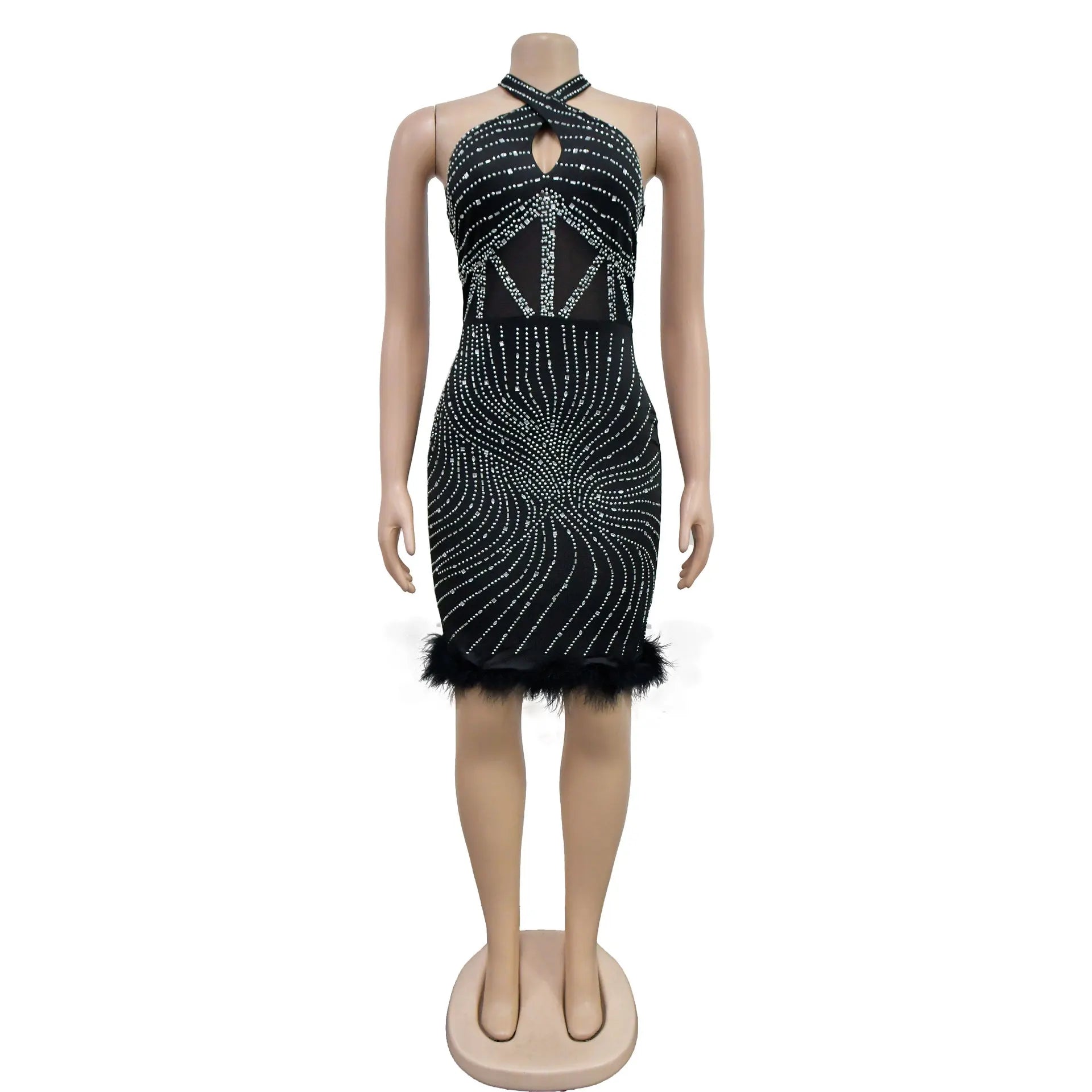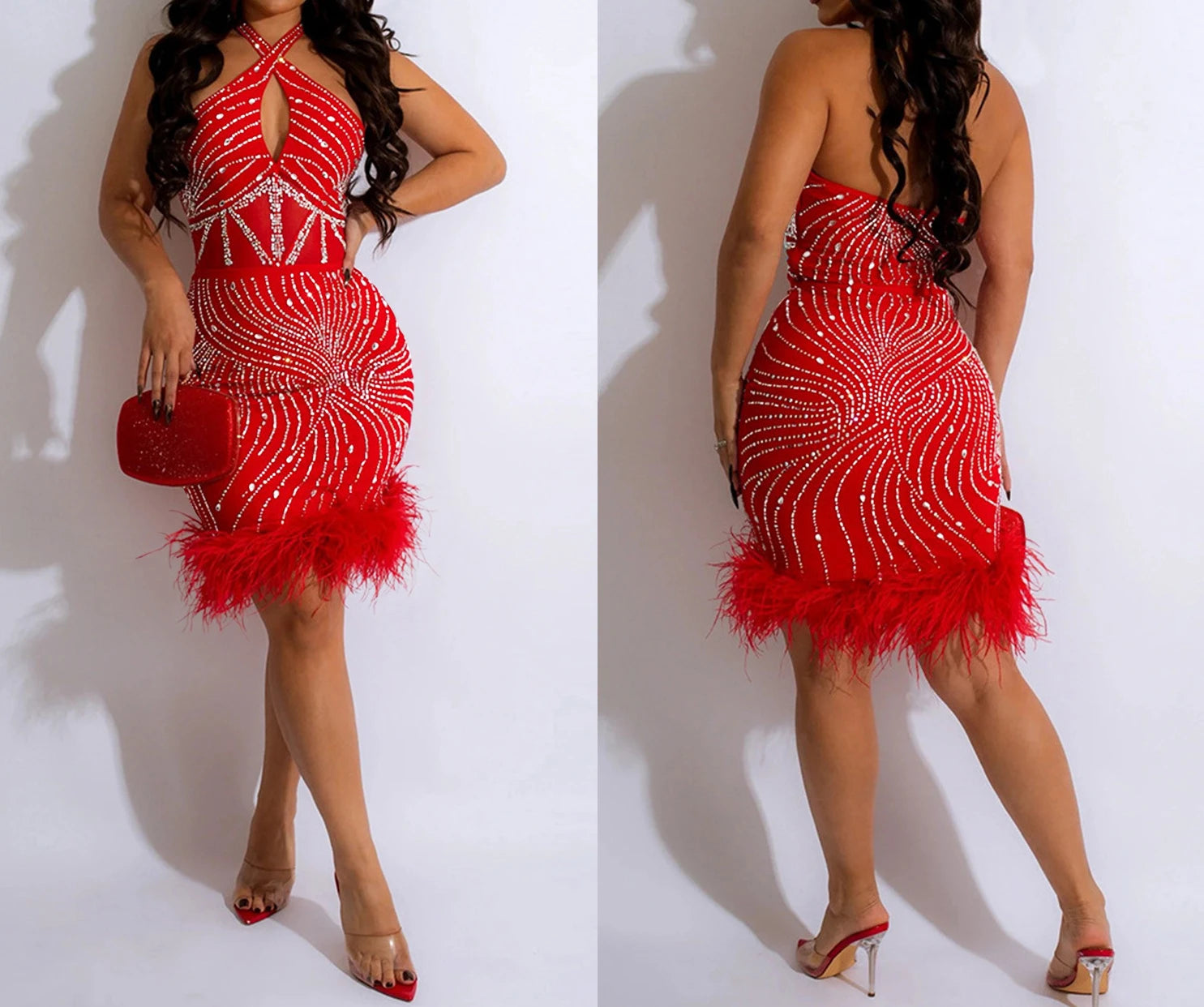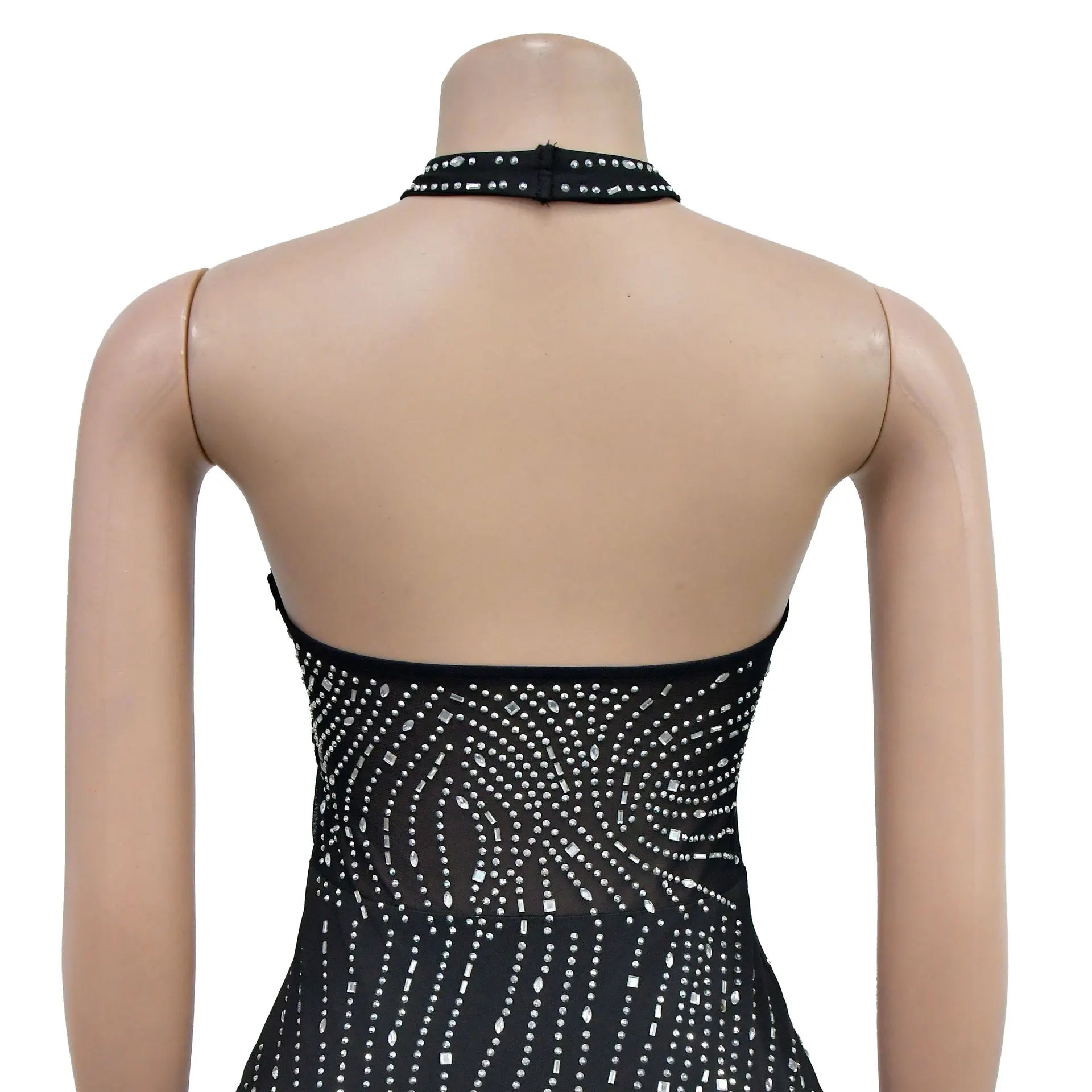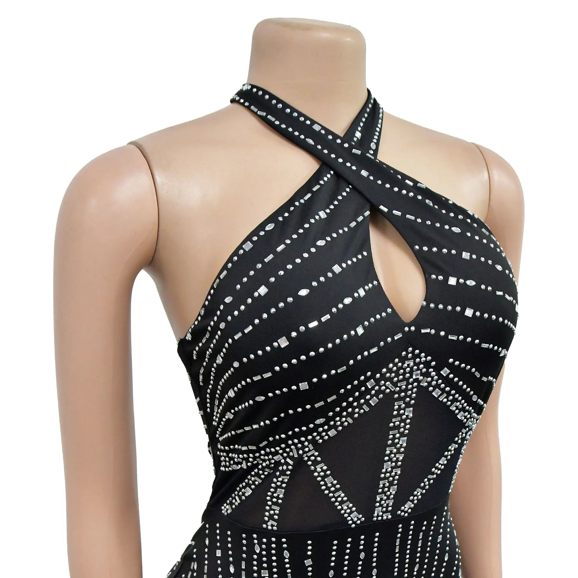 Dazzle on your special day with this sparkly diamond and rhinestone dress. The elegant sheer mesh design creates a luxurious look perfect for weddings, cocktails, and formal proms.