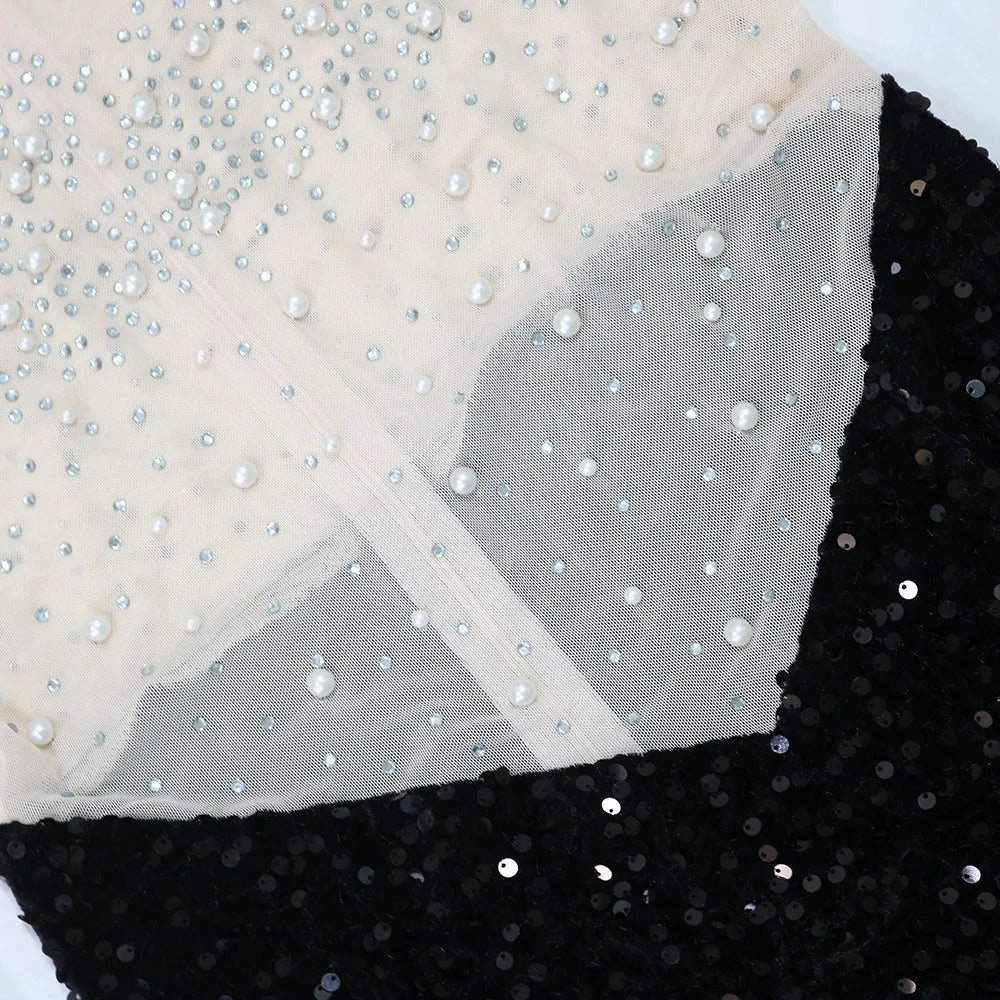 This stunning mermaid gown is perfect for any special occasion. With sparkling sequins, diamonds, and an elegant high slit, you'll turn heads at every event.
