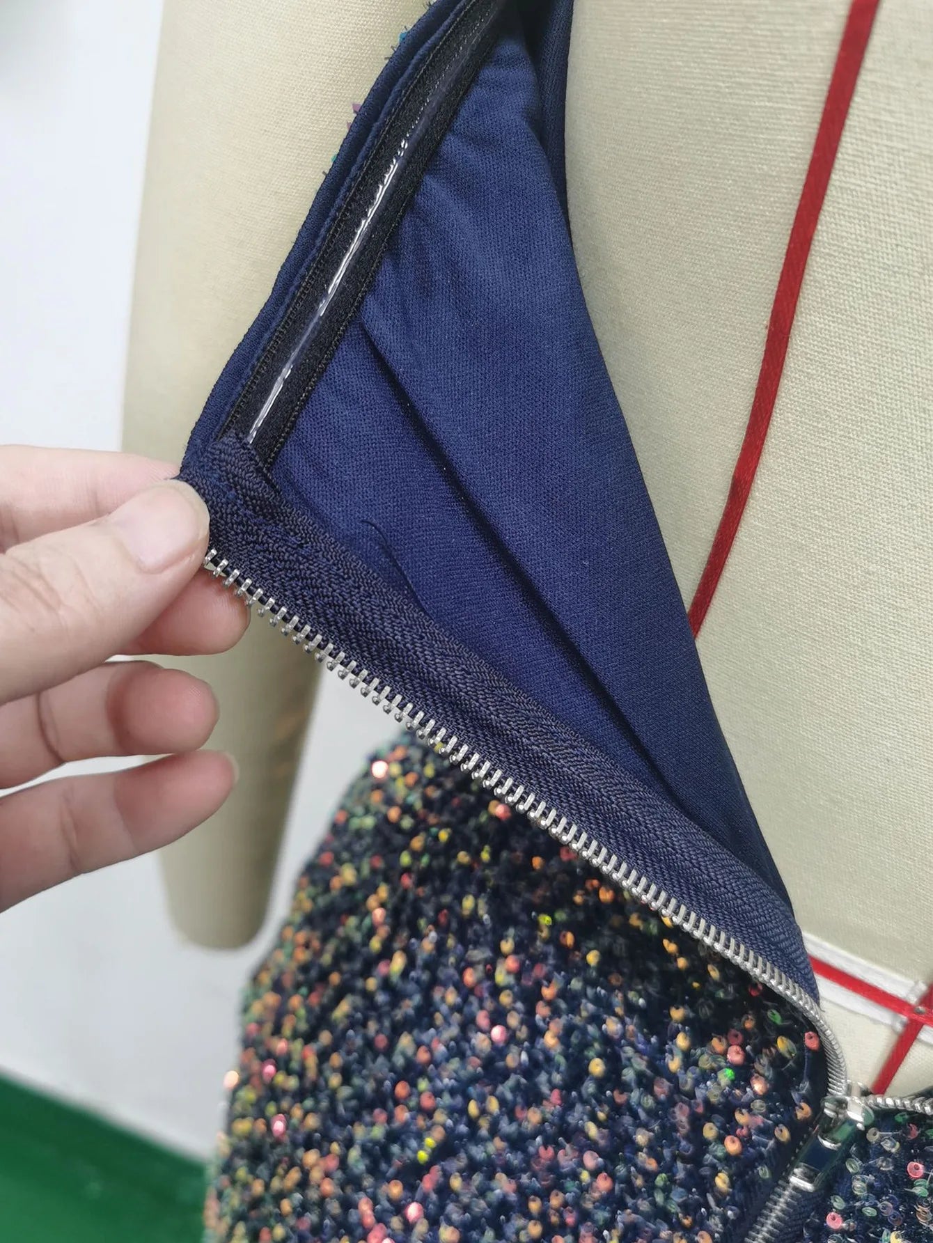 This gorgeous strapless evening dress features sparkling sequins and an elegant long silhouette, perfect for making a statement at any formal event.